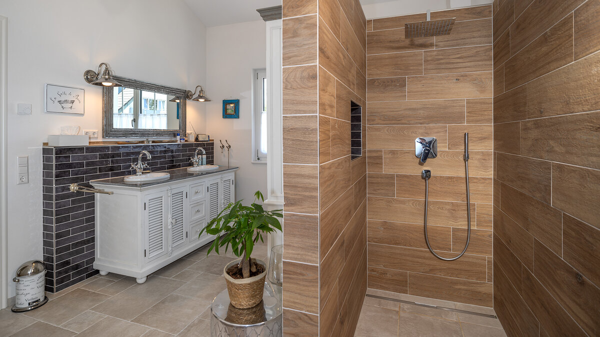 Haus Jost ist ein glänzendes Beispiel moderner Wohnkultur, das sowohl durch sein ästhetisches, mediterranes Äußeres als auch durch seine nachhaltige Bauweise beeindruckt. Dieses zweigeschossige Massivhaus mit Zeltdach vereint auf über 200 m² Wohnfläche Komfort, Stil und Umweltbewusstsein. Eine effiziente Beheizung wird durch eine Kombination aus Luft-/Wasser-Wärmepumpe und Kaminofen sichergestellt, während Holzböden und Fliesen im Bad die mediterrane Atmosphäre hervorheben. Im Erdgeschoss führt eine Diele in den großzügigen Wohn-/Ess- und Kochbereich, der den mediterranen Stil mit warmen Holzböden und natürlichen Materialien widerspiegelt. Ein Gästezimmer mit eigenem Duschbad bietet Privatsphäre für Besucher. Eine überdachte Terrasse mit Glaselementen erweitert den Wohnraum ins Freie, ideal für Entspannung. Das Obergeschoss umfasst ein geräumiges Schlafzimmer, ein Kinderzimmer und ein hochwertig ausgestattetes Bad. Ergänzend sorgen ein Hauswirtschaftsraum und eine Dachterrasse mit überdachtem Pool für Komfort und ein luxuriöses Flair. Haus Jost kombiniert modernste Technologien und Materialien mit einem mediterranen Baustil und stellt damit ein ideales Zuhause für Familien dar, die Wert auf Lebensqualität und umweltfreundliches Wohnen legen.