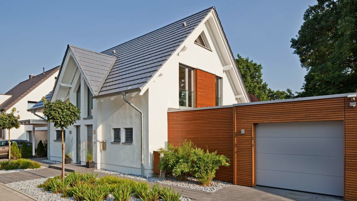 Das Haus Westermann zeigt, wie gut sich klassische Bauformen mit modernen Elementen mischen lassen und wie individuell man ein Architektenhaus auf den Geschmack der zukünftigen Bewohner abstimmen kann. Das Einfamilienhaus besticht auf rund 136 m² Wohnfläche mit viel Stil und setzt innen wie außen auf ein Farbkonzept rund um Weiß, Grau und Holz. Einer der Hingucker ist sicherlich die wunderschöne puristische Kragarmtreppe mit ihren scheinbar schwebenden Stufen. Das Haus Westermann wird durch eine Luft-/Wasser-Wärmepumpe mit angeschlossener Fußbodenheizung versorgt.